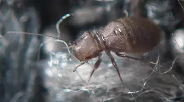 The flour mite is a tiny white mite with red legs, growing only 0.1 to 0.6 mm in length. They reproduce quickly with up to 500 eggs per female and larvae develop in 17 days. They survive long dry periods without food and prefer warm, humid climates due to being part of the mould mite family.