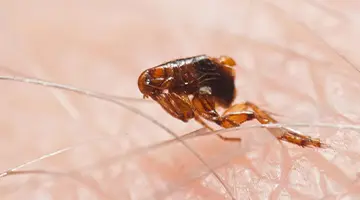Fleas are pesky insects that bite and suck the blood of humans, cats, and dogs. The most common type is the cat flea, which can briefly transfer to humans. They often bite repeatedly and cause itching for days, sometimes creating weals. Fleas can also spread tapeworms and trigger allergies.